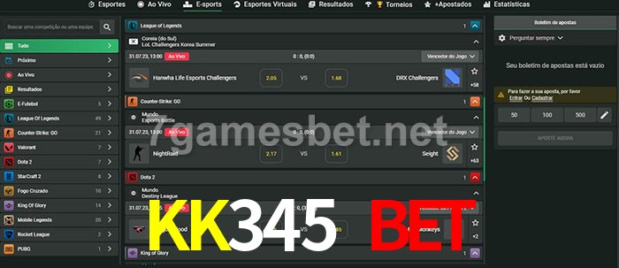 O KK345 Bet oferece uma grande seleção de opções de apostas em e-sports com probabilidades competitivas